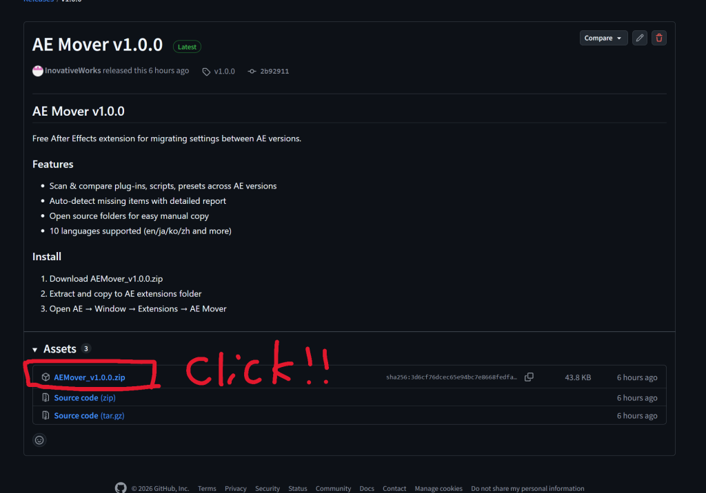 ダウンロード:GitHub – AE Mover v1.0.0