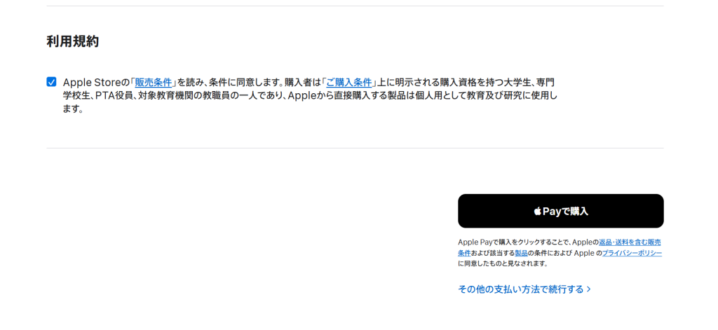 と思って、開発用に学割で買おうと思ってたMac miniのページへ行き、学生認証を済ませて無事通過したので学生版のページからMac miniの決済手前まできました!
